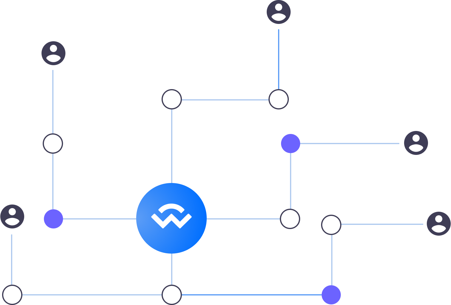 The connection is initiated by one peer displaying a QR Code or deep link with a standard DappsSync URI and is established when the counter-party approves this connection request.